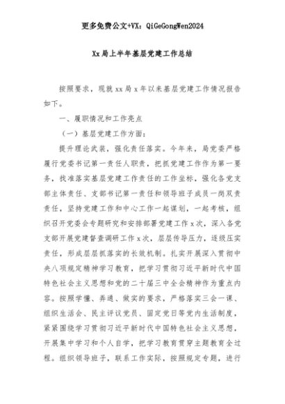 【七哥公文】2025年:【七哥公文】Xx局上半年基层党建工作总结+更多免费公文+VX:QiGeGongWen2024+更多免费公文+VX:QiGeGongWen2024