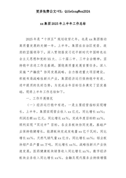 【七哥公文】2025年:【七哥公文】xx集团2025年上半年工作总结+更多免费公文+VX:QiGeGongWen2024+更多免费公文+VX:QiGeGongWen2024