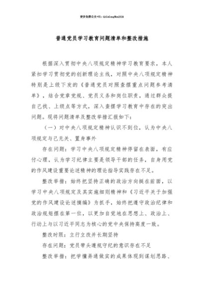 【七哥公文】2025年:【七哥公文】普通党员学习教育问题清单和整改措施+更多免费公文+VX:QiGeGongWen2024+更多免费公文+VX:QiGeGongWen2024