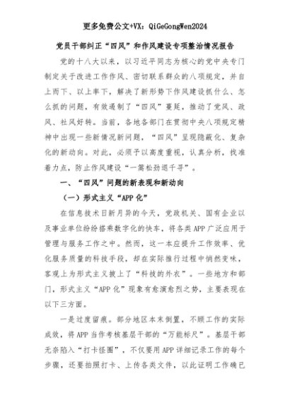 【七哥公文】2025年:【七哥公文】党员干部纠正“四风”和作风建设专项整治情况报告+更多免费公文+VX:QiGeGongWen2024+更多免费公文+VX:QiGeGongWen2024