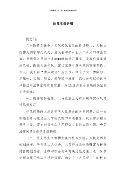 【七哥公文】2025年:【七哥公文】法院党课讲稿+更多免费公文+VX:QiGeGongWen2024+更多免费公文+VX:QiGeGongWen2024