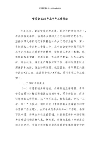【七哥公文】2025年:【七哥公文】管委会2025年上半年工作总结+更多免费公文+VX:QiGeGongWen2024+更多免费公文+VX:QiGeGongWen2024