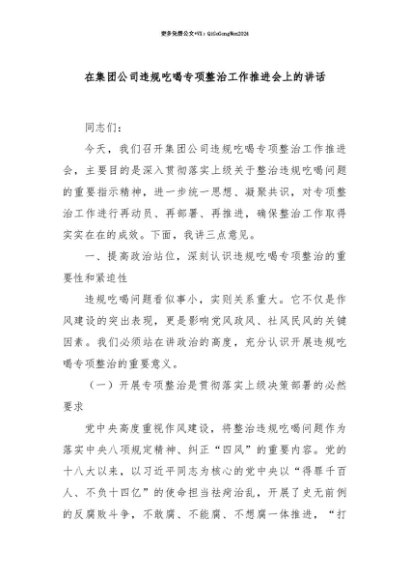 【七哥公文】2025年:【七哥公文】在集团公司违规吃喝专项整治工作推进会上的讲话+更多免费公文+VX:QiGeGongWen2024+更多免费公文+VX:QiGeGongWen2024
