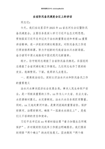 【七哥公文】2025年:【七哥公文】在省防汛备汛调度会议上的讲话+更多免费公文+VX:QiGeGongWen2024+更多免费公文+VX:QiGeGongWen2024