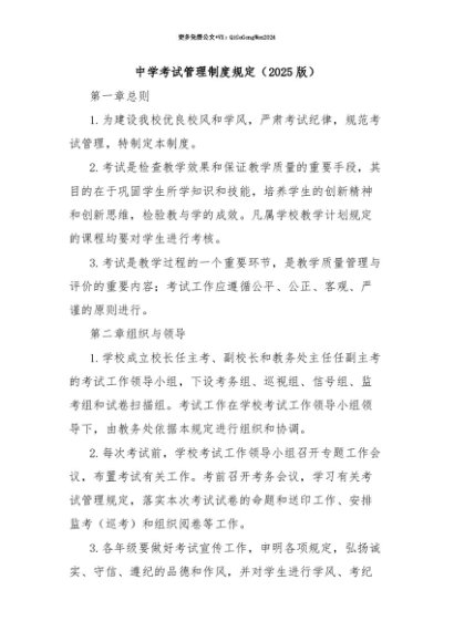 【七哥公文】2025年:【七哥公文】中学考试管理制度规定(2025版)+更多免费公文+VX:QiGeGongWen2024+更多免费公文+VX:QiGeGongWen2024