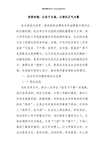 【七哥公文】2025年:【七哥公文】党课讲稿:以实干为基,以清风正气为翼+更多免费公文+VX:QiGeGongWen2024+更多免费公文+VX:QiGeGongWen2024