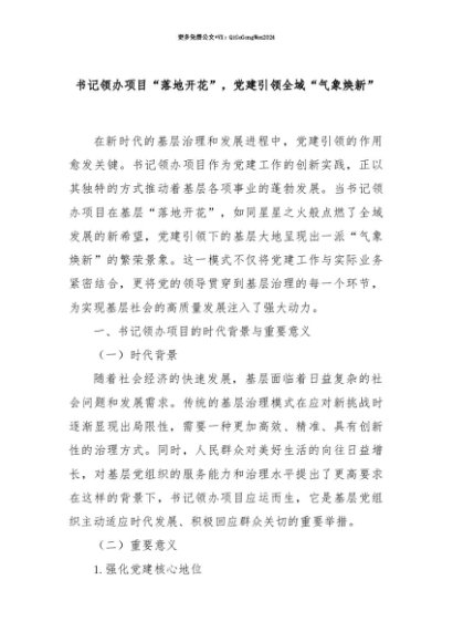 【七哥公文】2025年:【七哥公文】书记领办项目“落地开花”,党建引领全域“气象焕新”+更多免费公文+VX:QiGeGongWen2024+更多免费公文+VX:QiGeGongWen2024