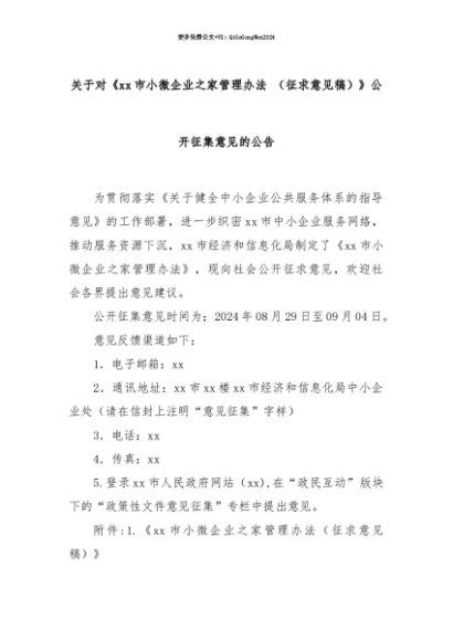 【七哥公文】2025年:【七哥公文】关于对《xx市小微企业之家管理办法 (征求意见稿)》公开征集意见的公告+更多免费公文+VX:QiGeGongWen2024+更多免费公文+VX:QiGeGongWen2024