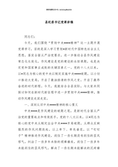 【七哥公文】2025年:【七哥公文】县纪委书记党课讲稿+更多免费公文+VX:QiGeGongWen2024+更多免费公文+VX:QiGeGongWen2024