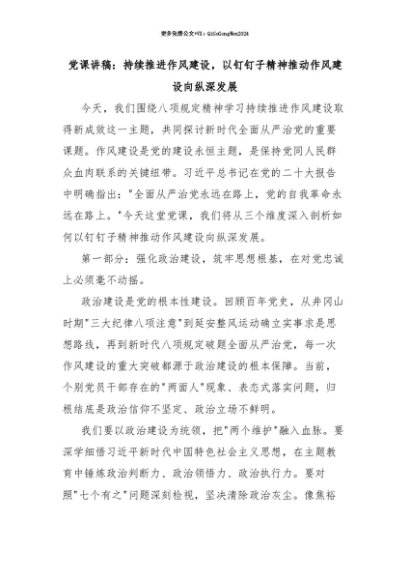 【七哥公文】2025年:【七哥公文】党课讲稿:持续推进作风建设,以钉钉子精神推动作风建设向纵深发展+更多免费公文+VX:QiGeGongWen2024+更多免费公文+VX:QiGeGongWen2024