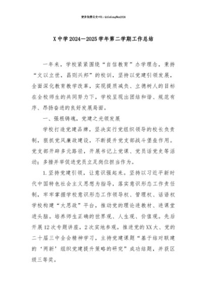 【七哥公文】2025年:【七哥公文】X中学2024-2025学年第二学期工作总结+更多免费公文+VX:QiGeGongWen2024+更多免费公文+VX:QiGeGongWen2024