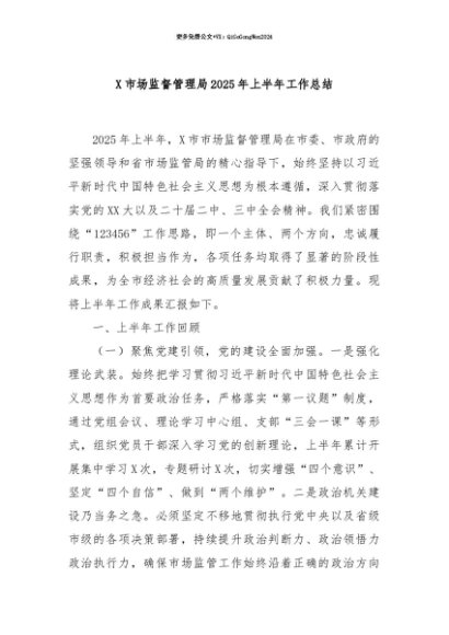 【七哥公文】2025年:【七哥公文】X市场监督管理局2025年上半年工作总结+更多免费公文+VX:QiGeGongWen2024+更多免费公文+VX:QiGeGongWen2024
