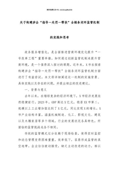 【七哥公文】2025年:【七哥公文】关于构建涉企“指导-处罚-帮扶”全链条闭环监管机制的实践和思考+更多免费公文+VX:QiGeGongWen2024+更多免费公文+VX:QiGeGongWen2024