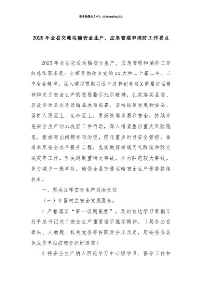 【七哥公文】2025年:【七哥公文】2025年全县交通运输安全生产、应急管理和消防工作要点+更多免费公文+VX:QiGeGongWen2024+更多免费公文+VX:QiGeGongWen2024