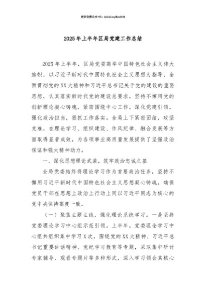 【七哥公文】2025年:【七哥公文】2025年上半年区局党建工作总结+更多免费公文+VX:QiGeGongWen2024+更多免费公文+VX:QiGeGongWen2024