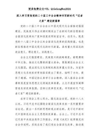 【七哥公文】2025年:【七哥公文】深入学习贯彻党的二十届三中全会精神书写新时代“记者之家”建设新篇章+更多免费公文+VX:QiGeGongWen2024+更多免费公文+VX:QiGeGongWen2024