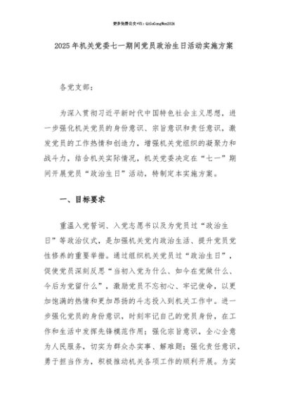 【七哥公文】2025年:【七哥公文】2025年机关党委七一期间党员政治生日活动实施方案+更多免费公文+VX:QiGeGongWen2024+更多免费公文+VX:QiGeGongWen2024