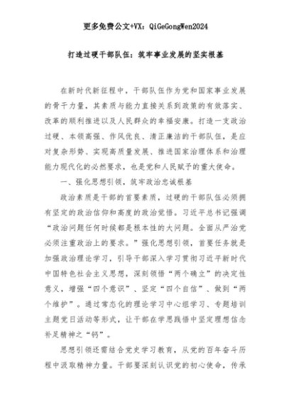 【七哥公文】2025年:【七哥公文】打造过硬干部队伍:筑牢事业发展的坚实根基+更多免费公文+VX:QiGeGongWen2024+更多免费公文+VX:QiGeGongWen2024