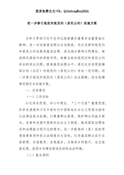 【七哥公文】2025年:【七哥公文】进一步修订规范村规民约(居民公约)实施方案+更多免费公文+VX:QiGeGongWen2024+更多免费公文+VX:QiGeGongWen2024