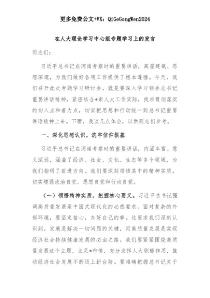 【七哥公文】2025年:【七哥公文】在人大理论学习中心组专题学习上的发言+更多免费公文+VX:QiGeGongWen2024+更多免费公文+VX:QiGeGongWen2024
