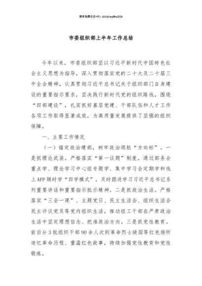 【七哥公文】2025年:【七哥公文】市委组织部上半年工作总结+更多免费公文+VX:QiGeGongWen2024+更多免费公文+VX:QiGeGongWen2024