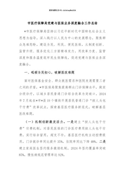 【七哥公文】2025年:【七哥公文】市医疗保障局党建与医保业务深度融合工作总结+更多免费公文+VX:QiGeGongWen2024+更多免费公文+VX:QiGeGongWen2024
