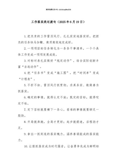 【七哥公文】2025年:【七哥公文】工作落实类过渡句(2025年6月19日)+更多免费公文+VX:QiGeGongWen2024+更多免费公文+VX:QiGeGongWen2024