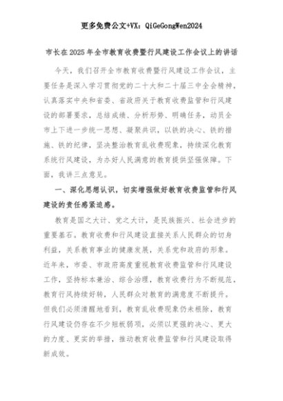 【七哥公文】2025年:【七哥公文】市长在2025年全市教育收费暨行风建设工作会议上的讲话+更多免费公文+VX:QiGeGongWen2024+更多免费公文+VX:QiGeGongWen2024
