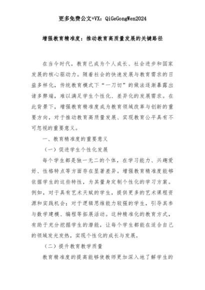 【七哥公文】2025年:【七哥公文】增强教育精准度:推动教育高质量发展的关键路径+更多免费公文+VX:QiGeGongWen2024+更多免费公文+VX:QiGeGongWen2024
