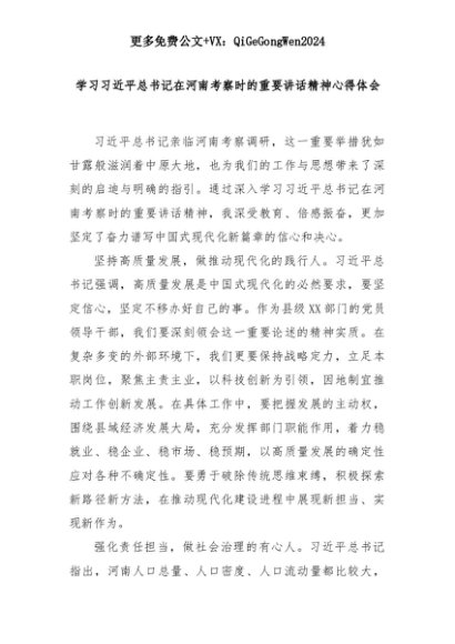 【七哥公文】2025年:【七哥公文】学习习近平总书记在河南考察时的重要讲话精神心得体会+更多免费公文+VX:QiGeGongWen2024+更多免费公文+VX:QiGeGongWen2024