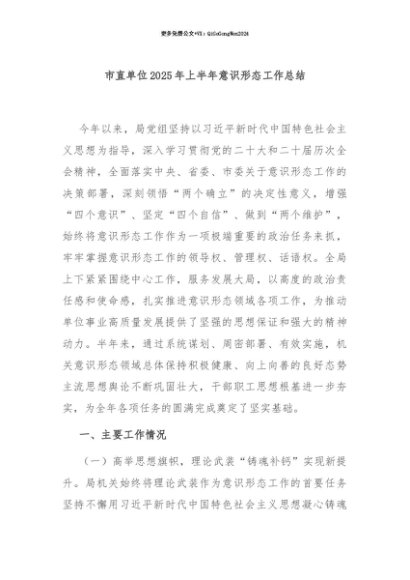 【七哥公文】2025年:【七哥公文】市直单位2025年上半年意识形态工作总结+更多免费公文+VX:QiGeGongWen2024+更多免费公文+VX:QiGeGongWen2024