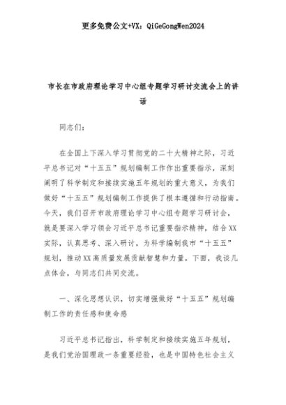 【七哥公文】2025年:【七哥公文】市长在市政府理论学习中心组专题学习研讨交流会上的讲话(“十五五”规划编制工作)+更多免费公文+VX:QiGeGongWen2024+更多免费公文+VX:QiGeGongWen2024