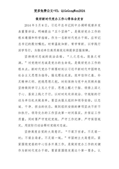 【七哥公文】2025年:【七哥公文】做好新时代党办工作心得体会发言+更多免费公文+VX:QiGeGongWen2024+更多免费公文+VX:QiGeGongWen2024