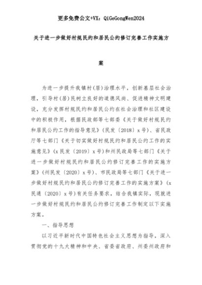 【七哥公文】2025年:【七哥公文】关于进一步做好村规民约和居民公约修订完善工作实施方案+更多免费公文+VX:QiGeGongWen2024+更多免费公文+VX:QiGeGongWen2024