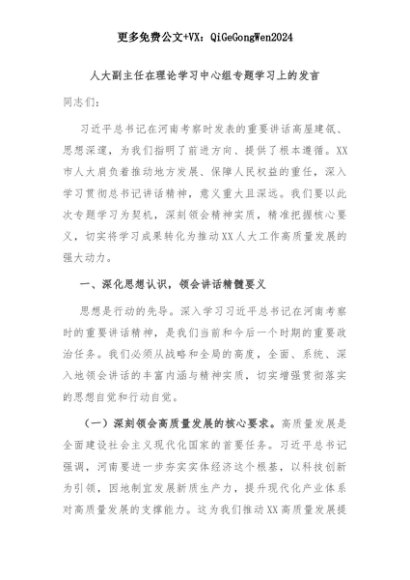 【七哥公文】2025年:【七哥公文】人大副主任在理论学习中心组专题学习上的发言+更多免费公文+VX:QiGeGongWen2024+更多免费公文+VX:QiGeGongWen2024