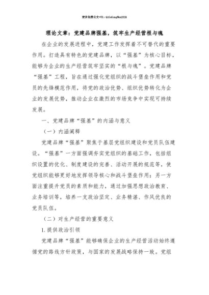 【七哥公文】2025年:【七哥公文】理论文章:党建品牌强基,筑牢生产经营根与魂+更多免费公文+VX:QiGeGongWen2024+更多免费公文+VX:QiGeGongWen2024
