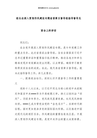 【七哥公文】2025年:【七哥公文】组长在深入贯彻作风建设专题省委第五督导组指导督导见面会上的讲话+更多免费公文+VX:QiGeGongWen2024+更多免费公文+VX:QiGeGongWen2024