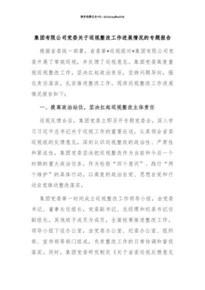 【七哥公文】2025年:【七哥公文】集团有限公司党委关于巡视整改工作进展情况的专题报告+更多免费公文+VX:QiGeGongWen2024+更多免费公文+VX:QiGeGongWen2024