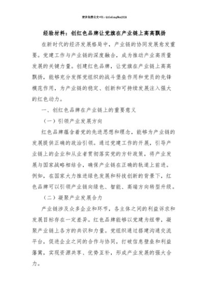 【七哥公文】2025年:【七哥公文】经验材料:创红色品牌让党旗在产业链上高高飘扬+更多免费公文+VX:QiGeGongWen2024+更多免费公文+VX:QiGeGongWen2024