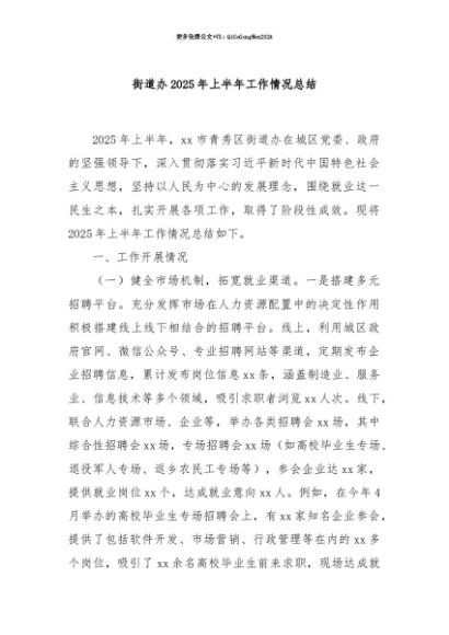 【七哥公文】2025年:【七哥公文】街道办2025年上半年工作情况总结+更多免费公文+VX:QiGeGongWen2024+更多免费公文+VX:QiGeGongWen2024