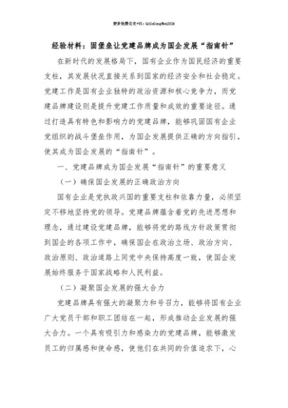 【七哥公文】2025年:【七哥公文】经验材料:固堡垒让党建品牌成为国企发展“指南针”+更多免费公文+VX:QiGeGongWen2024+更多免费公文+VX:QiGeGongWen2024