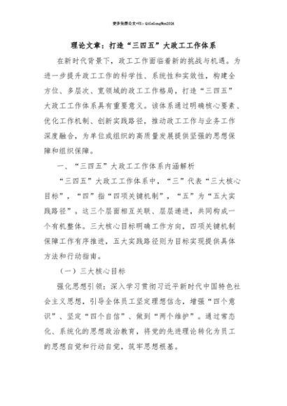 【七哥公文】2025年:【七哥公文】理论文章:打造“三四五”大政工工作体系+更多免费公文+VX:QiGeGongWen2024+更多免费公文+VX:QiGeGongWen2024