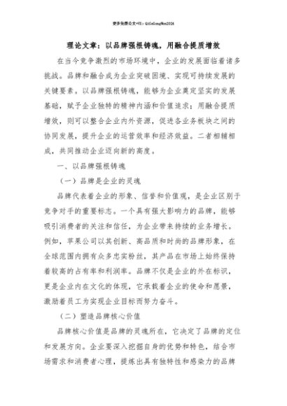 【七哥公文】2025年:【七哥公文】理论文章:以品牌强根铸魂,用融合提质增效+更多免费公文+VX:QiGeGongWen2024+更多免费公文+VX:QiGeGongWen2024