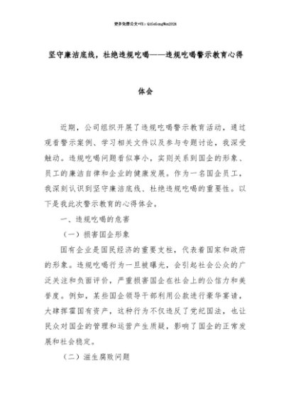 【七哥公文】2025年:【七哥公文】坚守廉洁底线,杜绝违规吃喝——违规吃喝警示教育心得体会+更多免费公文+VX:QiGeGongWen2024+更多免费公文+VX:QiGeGongWen2024