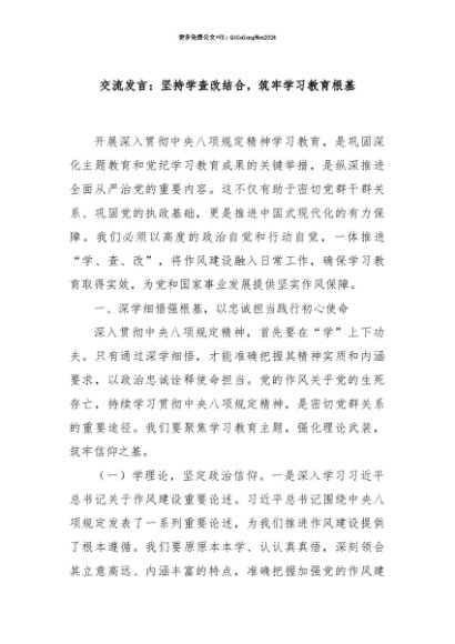【七哥公文】2025年:【七哥公文】交流发言:坚持学查改结合,筑牢学习教育根基+更多免费公文+VX:QiGeGongWen2024+更多免费公文+VX:QiGeGongWen2024
