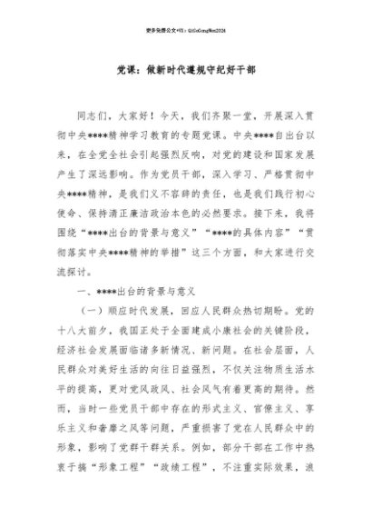 【七哥公文】2025年:【七哥公文】党课:做新时代遵规守纪好干部+更多免费公文+VX:QiGeGongWen2024+更多免费公文+VX:QiGeGongWen2024