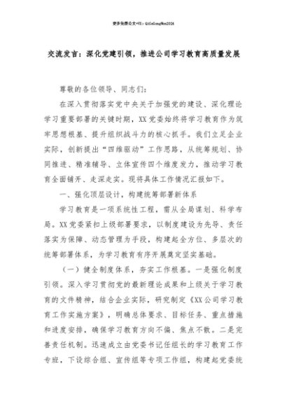 【七哥公文】2025年:【七哥公文】交流发言:深化党建引领,推进公司学习教育高质量发展+更多免费公文+VX:QiGeGongWen2024+更多免费公文+VX:QiGeGongWen2024