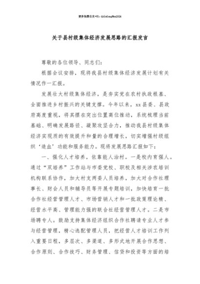 【七哥公文】2025年:【七哥公文】关于县村级集体经济发展思路的汇报发言+更多免费公文+VX:QiGeGongWen2024+更多免费公文+VX:QiGeGongWen2024