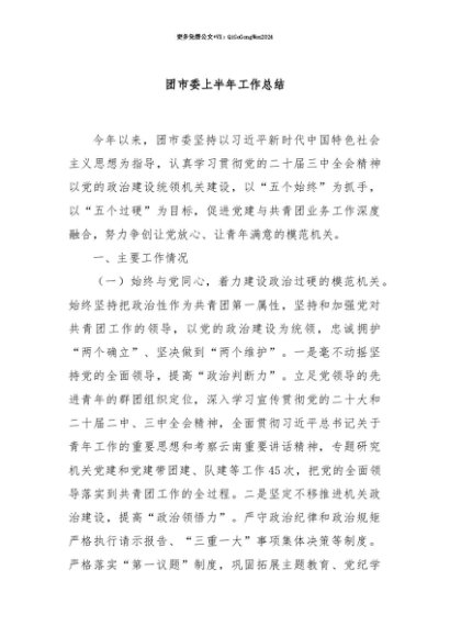 【七哥公文】2025年:【七哥公文】团市委上半年工作总结+更多免费公文+VX:QiGeGongWen2024+更多免费公文+VX:QiGeGongWen2024