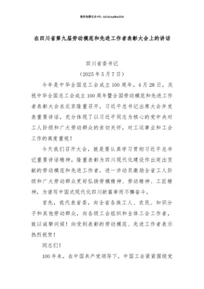 【七哥公文】2025年:【七哥公文】在四川省第九届劳动模范和先进工作者表彰大会上的讲话+更多免费公文+VX:QiGeGongWen2024+更多免费公文+VX:QiGeGongWen2024